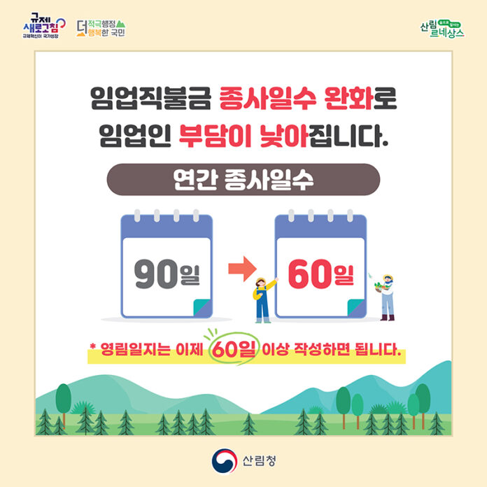 산림청, ‘종사일 수 완화’ 규제 개선과제로 발굴…관련 법률 시행규칙 개정